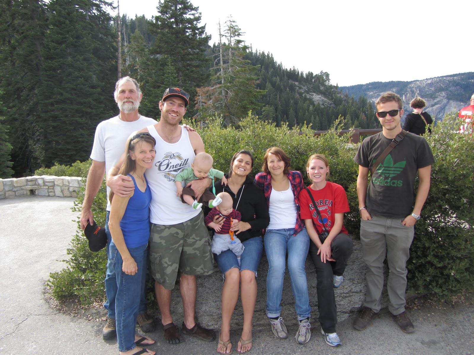Two weekends ago we were able to take a long weekend and take the boys camping in Yosemite National Park. Andy has wanted to take me here, since we met almost 6 years ago. So this was my chance and we were able to go with the whole Todd clan! From Dad and Mom, Luke and Shelby(portland), Zeke and Bekah (Davis), Amanda( Santa Rosa), Ronja and Max (Germany). It was such a fabulous time, I have never been somewhere so breath taking. It was like driving into the Land Before Time, anyone remember those movies? Ya know, Little Foot, Sarah, Petree and the gang! Anyhow, the boys did great camping! We got them little Dinosaur suits, nothing to do with me thinking it was like the Land Before Time. But they were so cute and warm. Somehow we did not get any pictures of them on our camera, but they are wearing them for Halloween, so they will be seen. We went on a really beautiful hike, we were gone all day and they boys did great. We just fed them and changed them as we went along. It was nice to have all our family, so we just took turns! Ok, I think the old daddy had one the whole time minus about 15 min. but what are daddy's for! That night, probably out of exhaustion, the boys had quite the squirmy night. My normally great sleeping babies, decided between the 2 of them they would be up every hour. SO, I was up at least every hour. Until Mavs decided it was time to scream, so I fed him, but Mavs scream resulted in Brooks yelling! My Brooks baby is as mellow as they come, but home dog was not happy. He yelled and yelled and yelled! While I panicked, panicked and panicked!! Poor baby had real bad gas and a nasty old diaper! So Andy and I left Mavs with Grandma and ran Brooks to the car ( after scrambling through the bear locker for wipes and gas medicine, darn bears), who was still screaming! We made it and got him somewhat settled down, but he was wide away and it was 5 am. So Grandma is up with Mavs, Andy and I are up with Brooks, arguing over who should go rest. I lost and was sent to bed for a bit! Which ended in both boys falling asleep for a few more hours, phew! Did I mention that nobody was up in the campsite before we went to the car, but as we were walking back there were several camps up and at um! OOPS! I decided they were thinking that is why you do not bring babies camping!! Lets not lie, I was thinking it in the moment!! Overall like I said they did great, and they normally do while we are camping, but there is a first time for everything!!